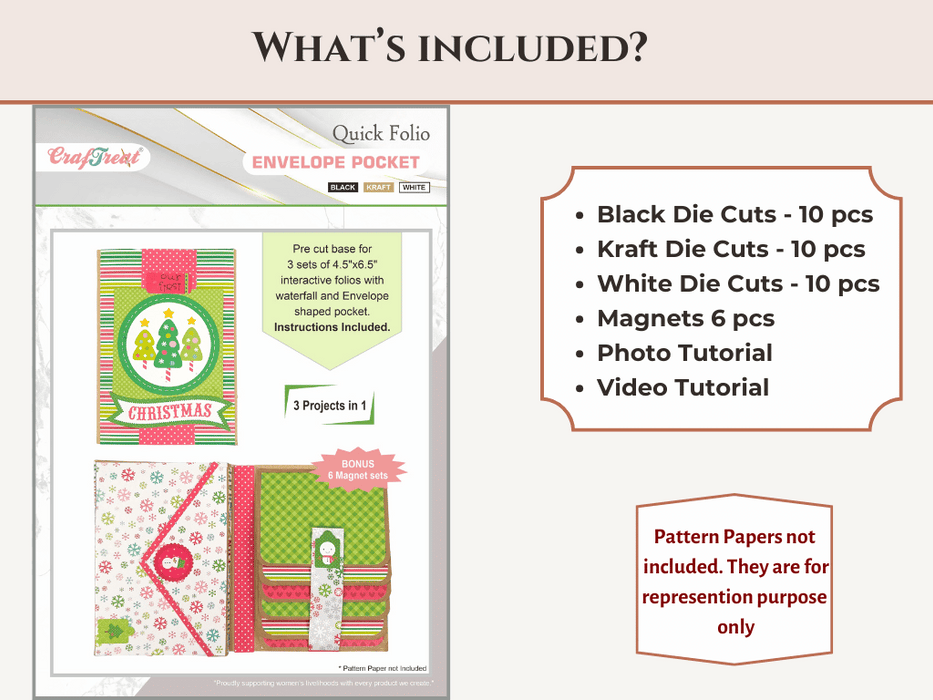 Craftreat Scrapbook Blank Quick Folio - Envelope Pocket Folio - Black, Kraft and White